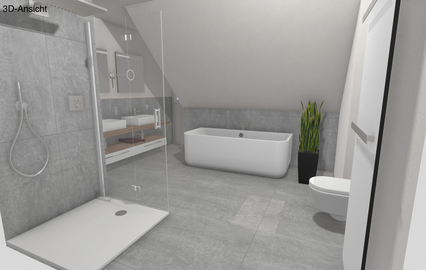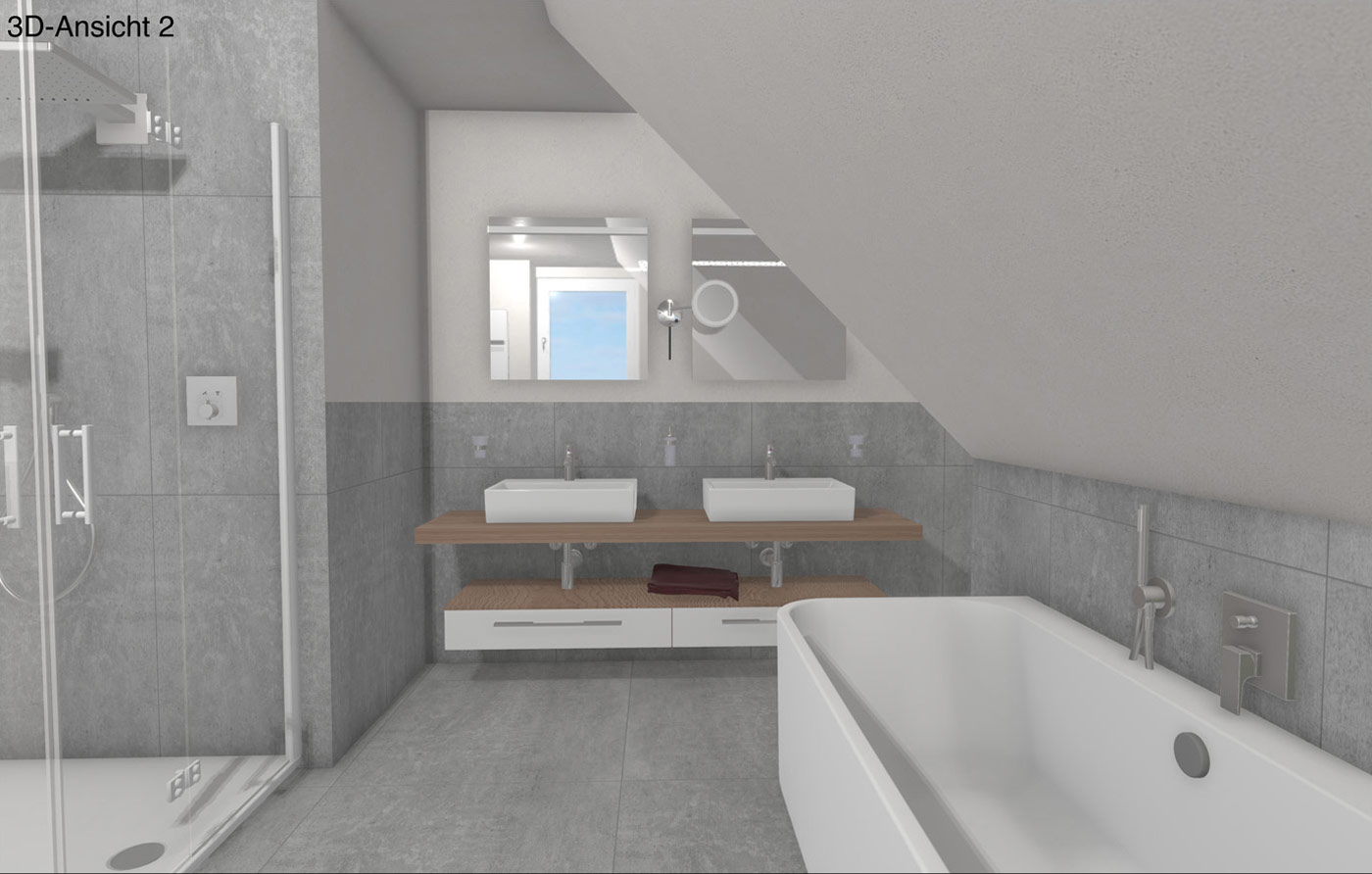 Sehen Sie Ihr neues Bad schon vor dem Umbau – realitätsnah, farbecht und bis ins Detail geplant.