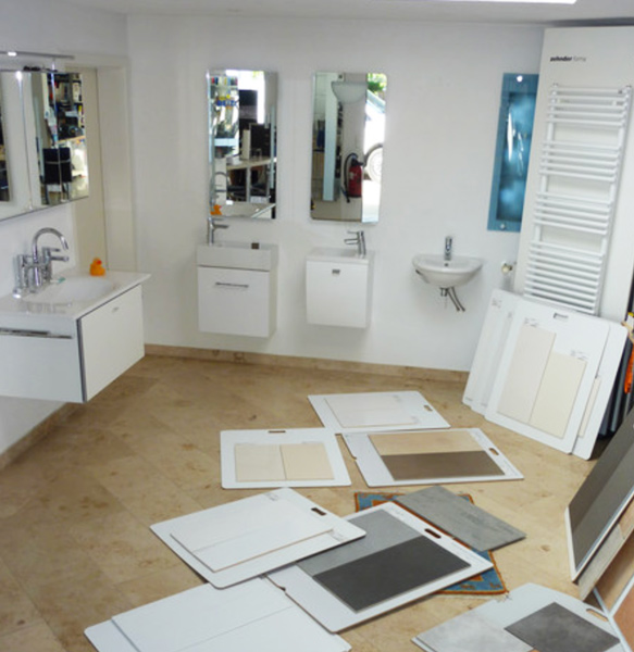 Derzeit entsteht in unseren Räumlichkeiten eine moderne Ausstellung, in der Sie hochwertige Produkte führender Marken live erleben können – von Armaturen und Sanitärobjekten bis hin zu großflächig präsentierten Fliesenmustern, die Ihnen helfen, sich Ihr neues Bad besser vorzustellen.